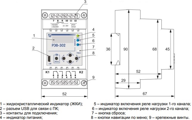 Багатофункціональний реле РЕВ-302 являє собою мікропроцесорний програмований пристрій і призначений для включення/відключення однієї або двох навантажень в попередньо встановлені користувачем моменти часу з урахуванням напруги і освітленості зовнішнього фотодатчика. РЕВ-302 може бути підключено до мережі змінного струму 220-240 В/50Гц або до джерела постійного струму, має 2 групи контактів на переключення з номінальним струмом 16А при комутуючим змінній напрузі 250В. Тимчасова затримка на запуск реле після подачі живлення задається користувачем, так само як і окремі часові затримки на виконання дій реле напруги і сутінкового реле (для установки часу повторного включення і т. п.). Передбачена спільна або незалежна робота реле часу, реле напруги та фотореле, функція простого включення контактів навантаження через заданий час після подачі живлення.